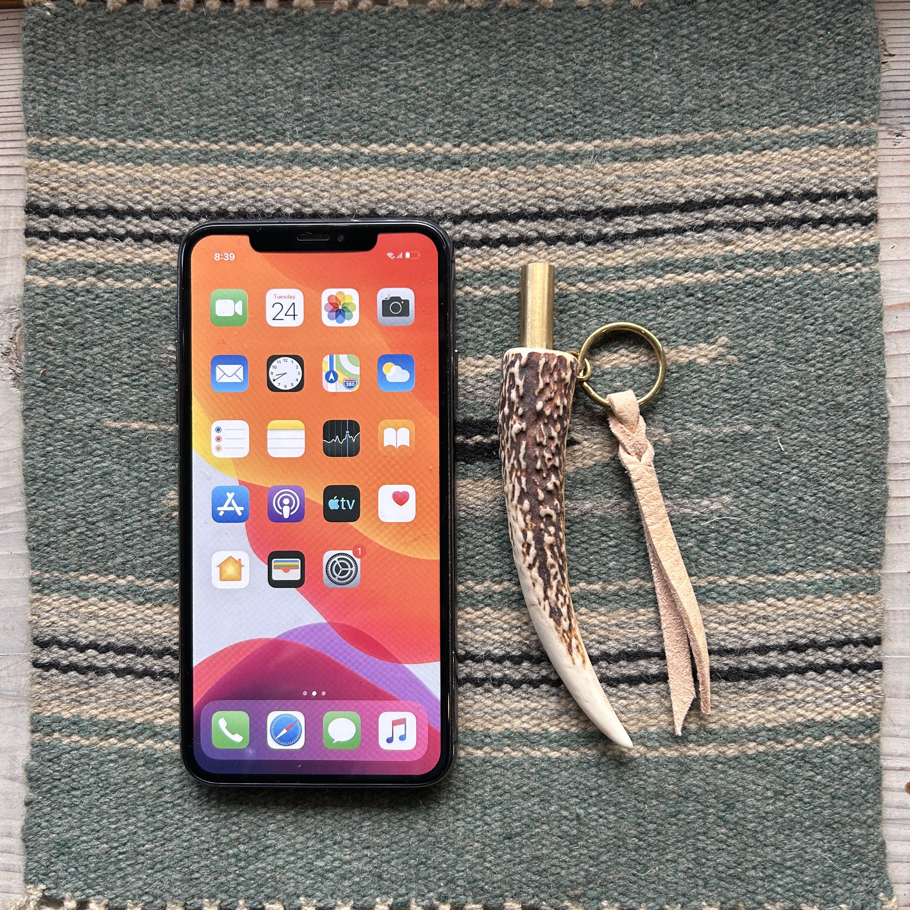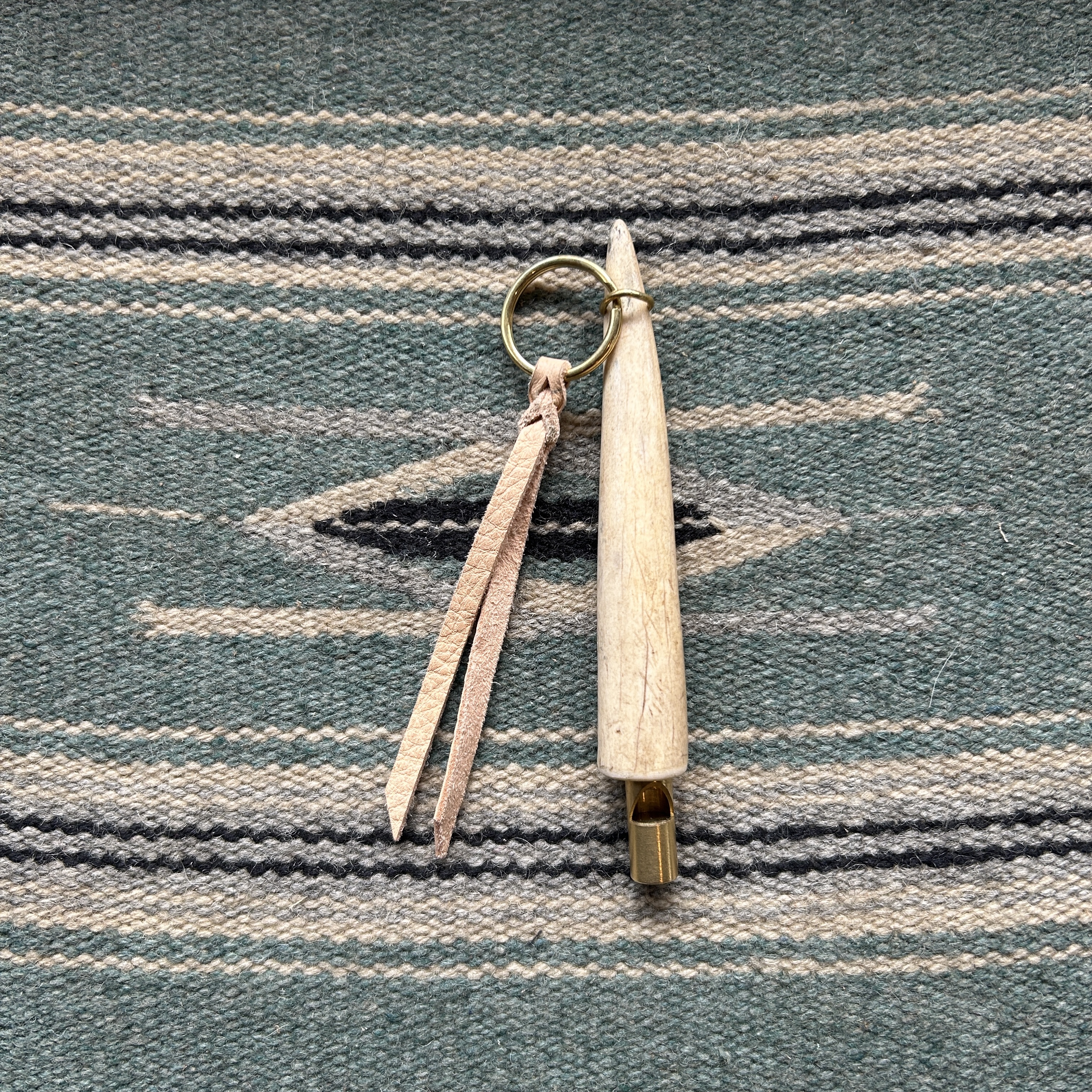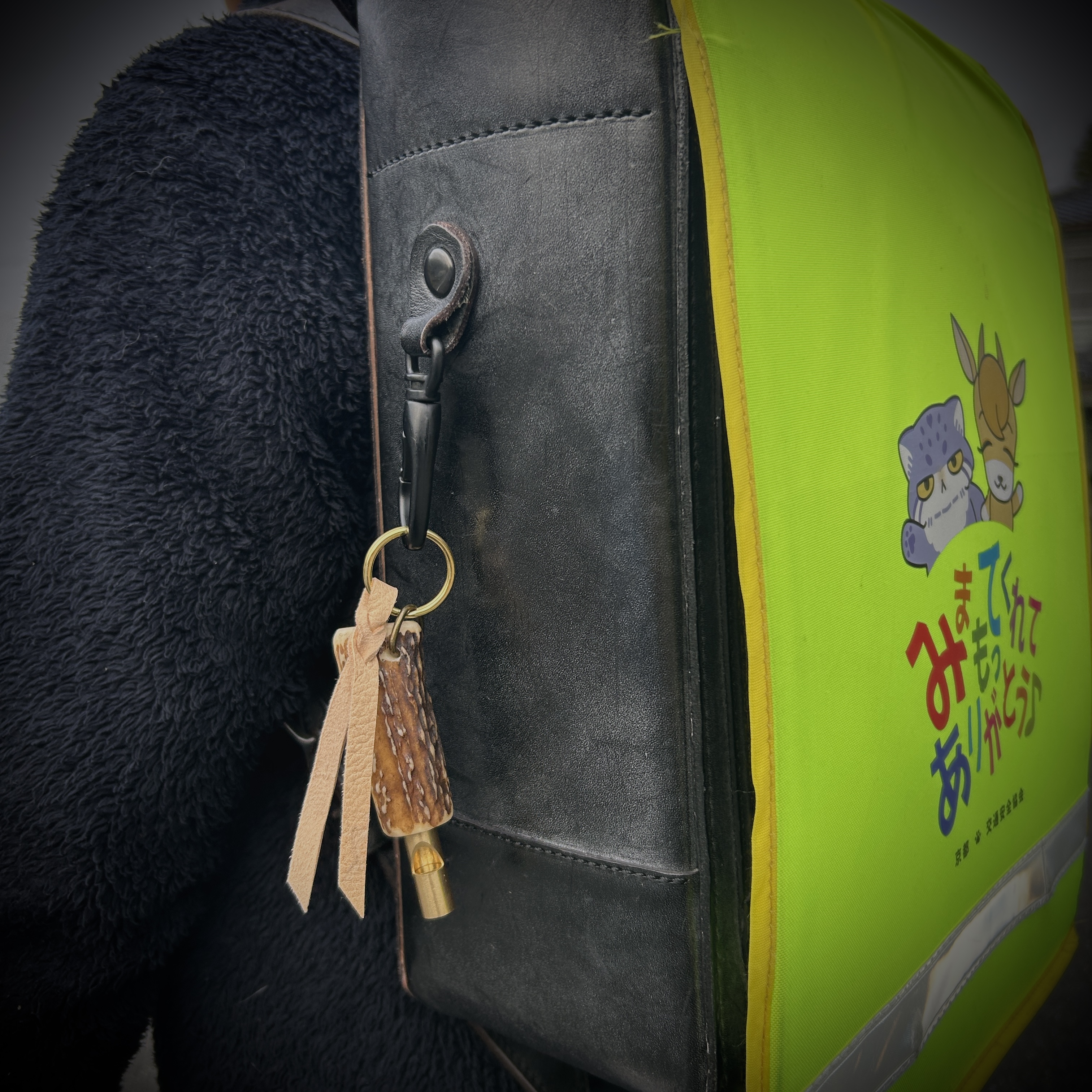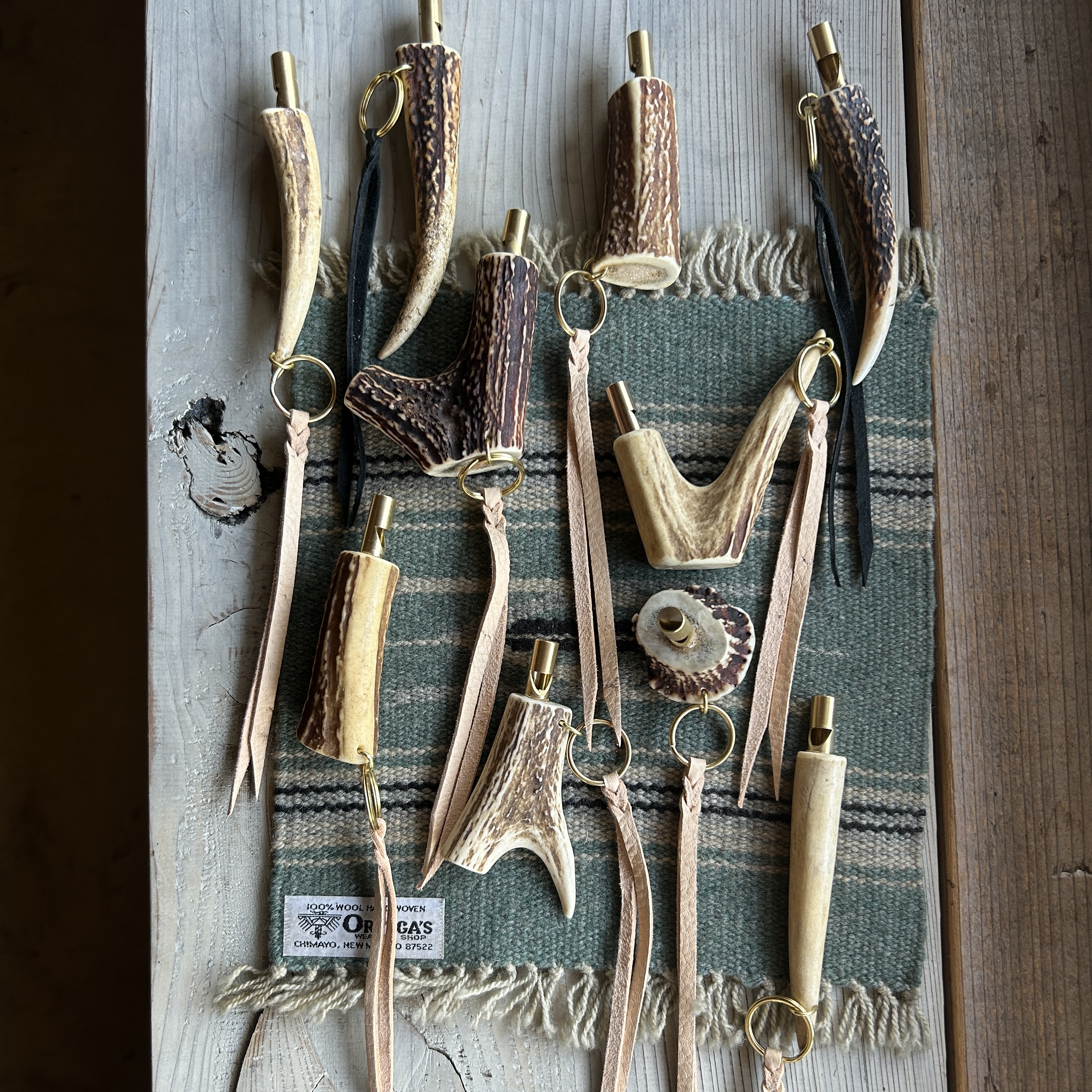 獣害駆除された地域の鹿の角(ツノ)とレザーを使ったホイッスルは、災害対策や緊急時に役立ちます。ちなみに災害対策グッズとして、就寝時の枕元に置いておくと良い3つのアイテムはスマホ・靴・ホイッスルです。大声で叫んで助けを求めるよりも、少ないエネルギーで存在を知らせることができます。
