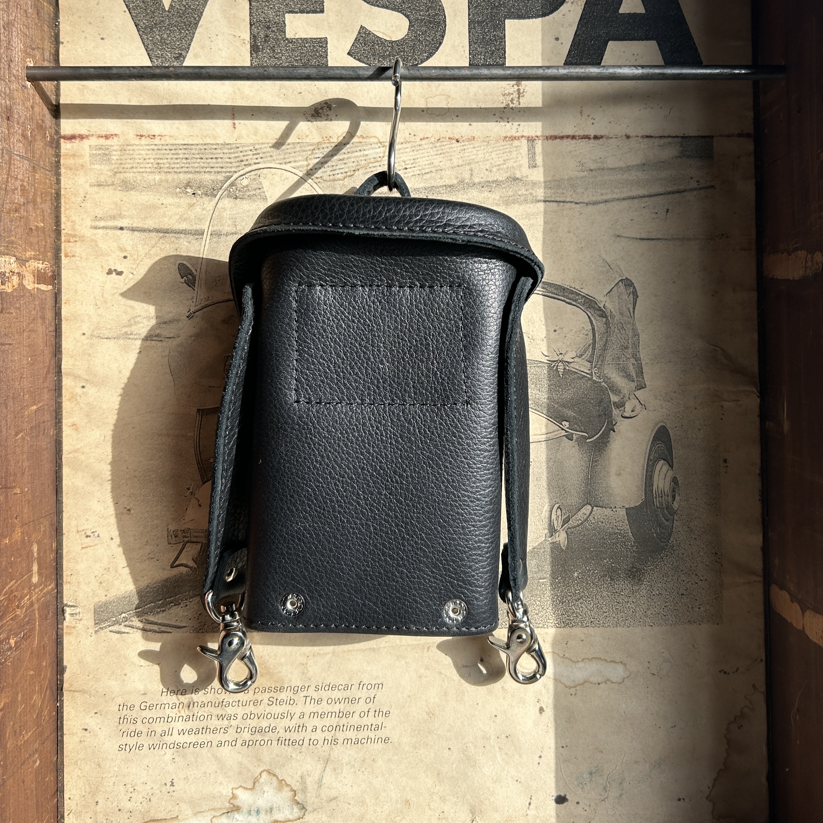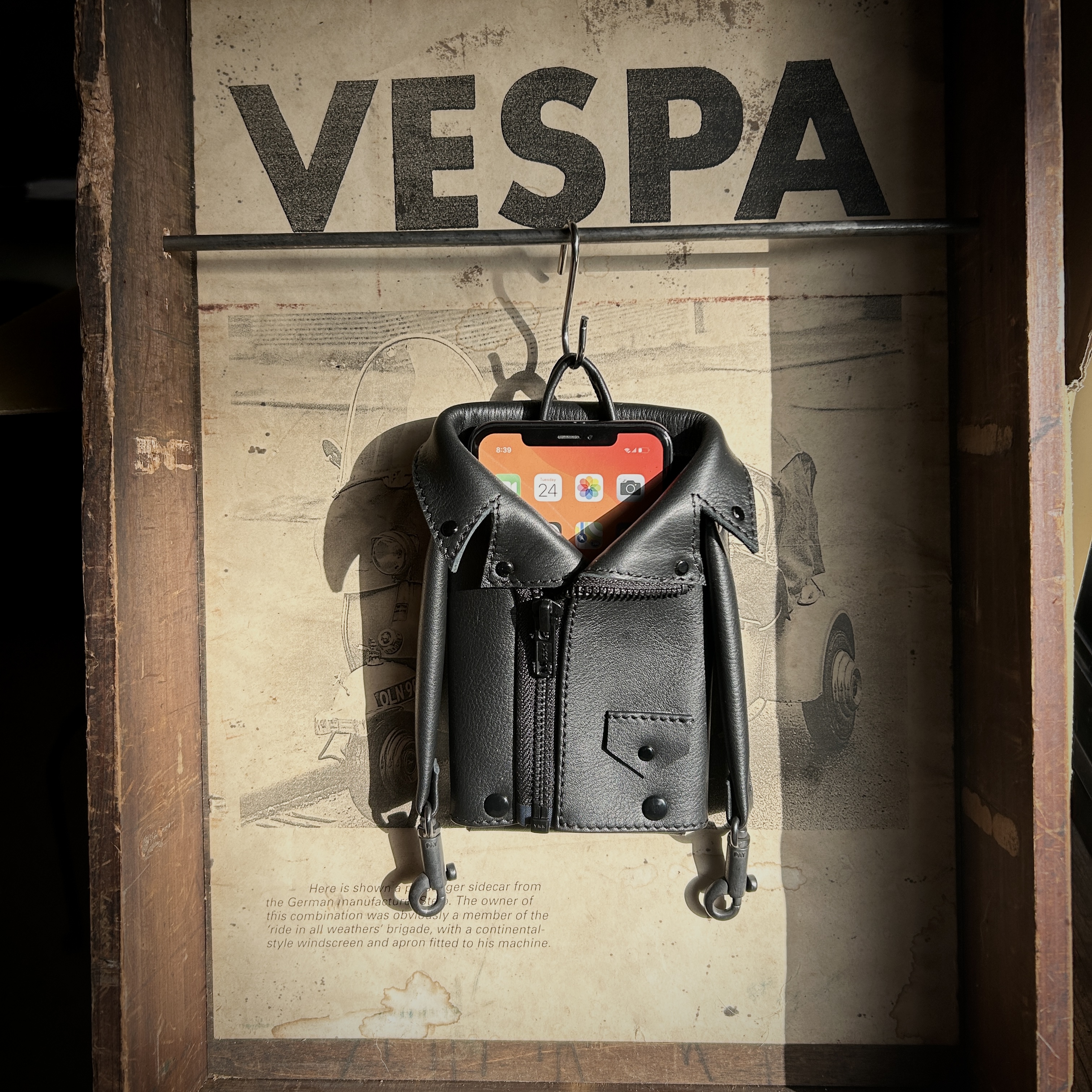 RockやPUNKシーン、バイクファッションの不滅のアイテム”Wライダースジャケット”デザインのNewアイテムです。その名も"ライダースポケット"はスマートフォンの収納をメインに、底面のパーツを取り外す事でペットボトルを入れたり、キャンプでも使用されるカセットコンロ用のCB缶カバーとして着せることもできます。